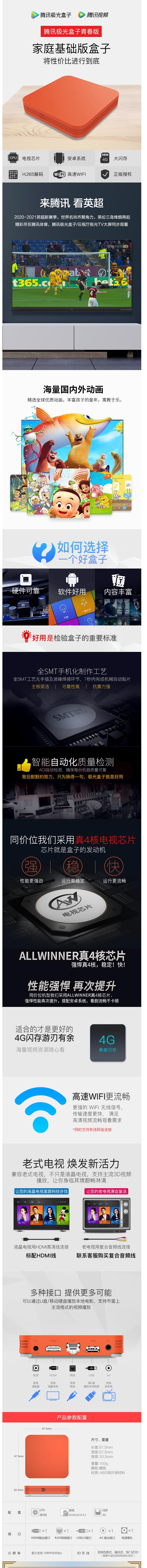 腾讯 极光盒子 网络机顶盒4核 wifi+网口 货号:JC