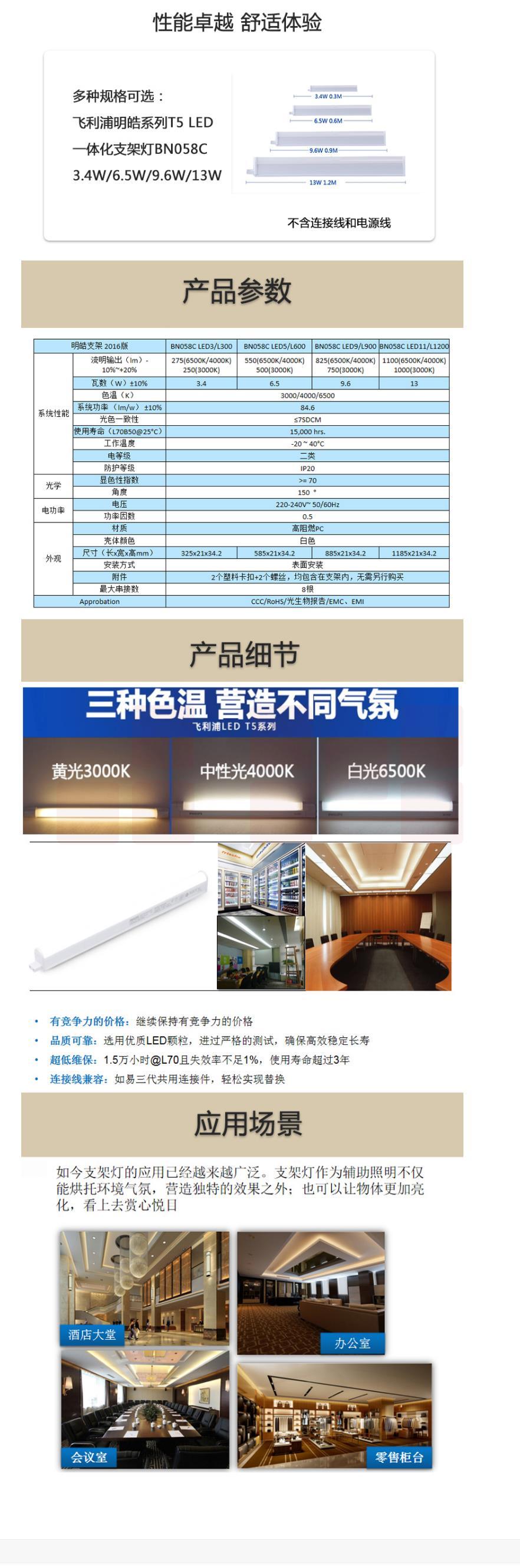 飞利浦T5一体化支架 21W 6500K 长 86cm 货号:ZF