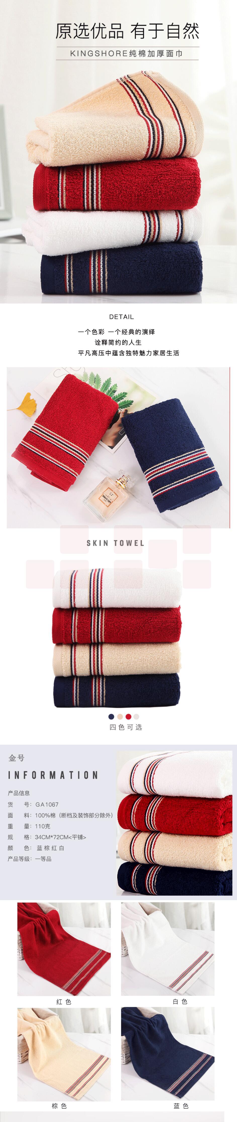 金号 毛巾 纯棉面巾 72*34cm 110g GA1067 颜色随机