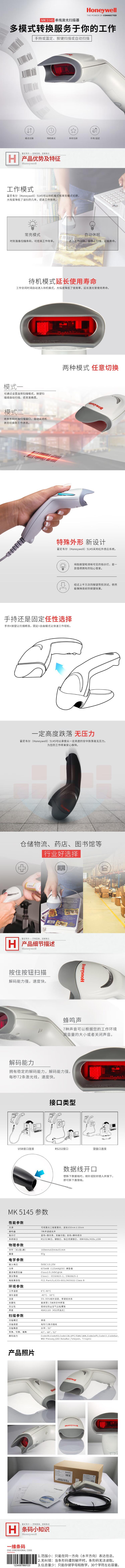 霍尼韦尔 MK5145 USB口 一维激光有线扫描器扫码枪扫描枪 白