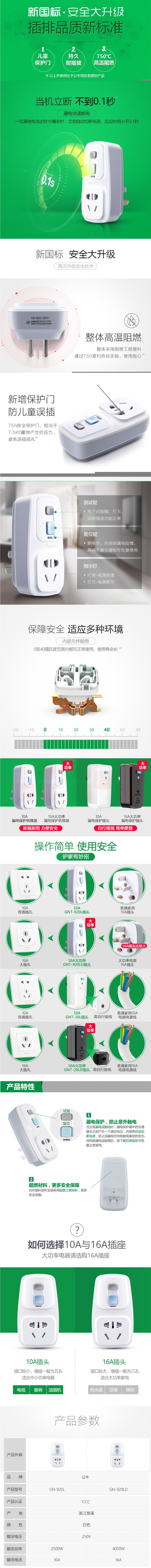 公牛GN-920L漏电保护转换插头10A插座转换器
