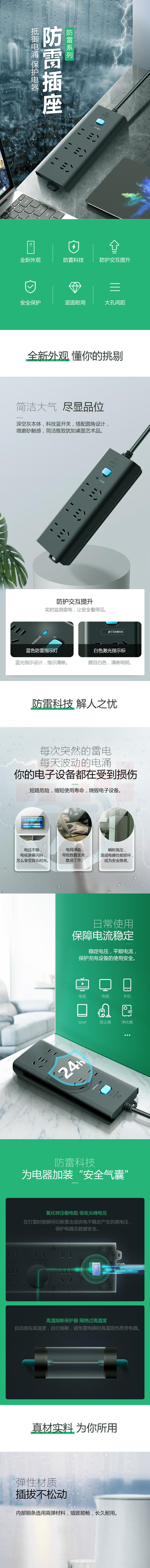 公牛GN-H5330 6位总控全长3米防雷插座/插线板/插排/排插/接线板/拖线板 6位总控全长3米