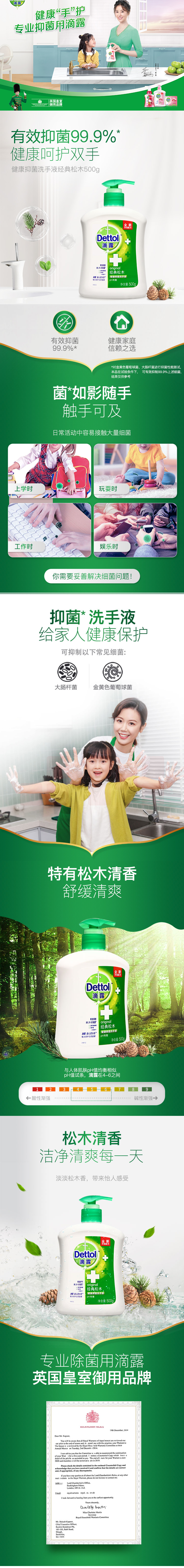 滴露 500g 健康抑菌洗手液经典松木 抑菌99.9%