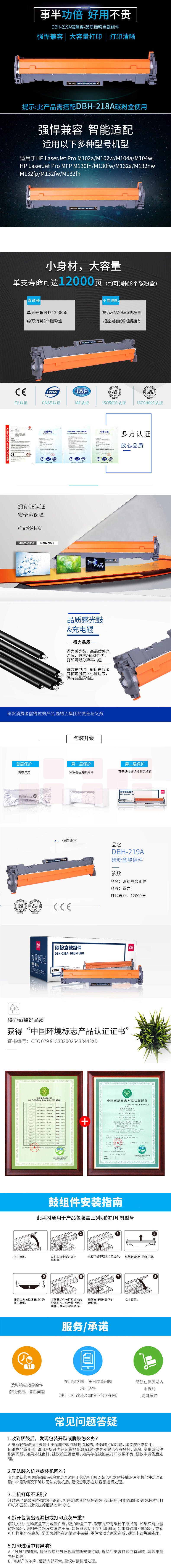 得力DBH-219A硒鼓带芯片鼓组件 适用惠普HP M104a M104w M132a不含粉盒