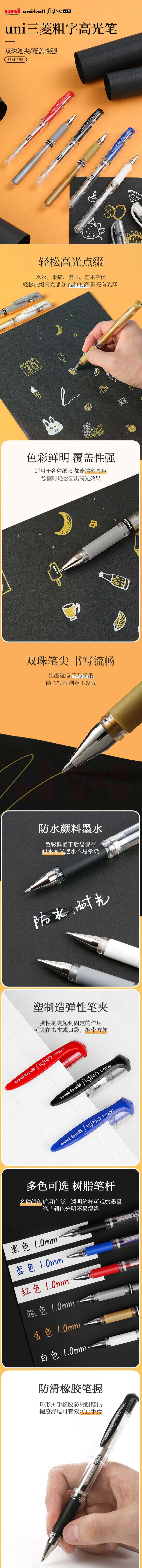 三菱(Uni)耐水速记中性笔高光笔1.0mm签字笔UM-153黑色 12支装