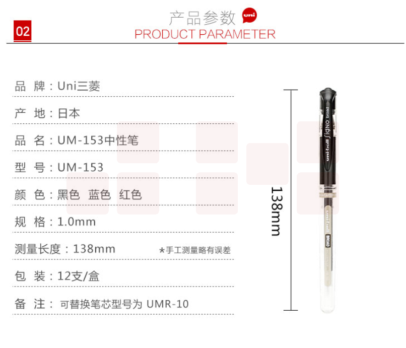 三菱 UM-153 黑色耐水速记中性笔1.0mm签字笔 (12支装 )