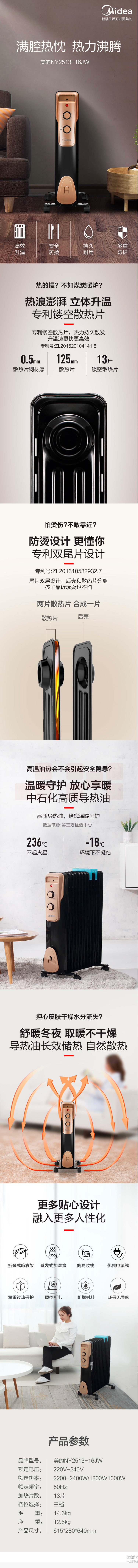美的 电暖器 13片 NY2513-16JW 取暖器电暖气电暖器烘衣家用