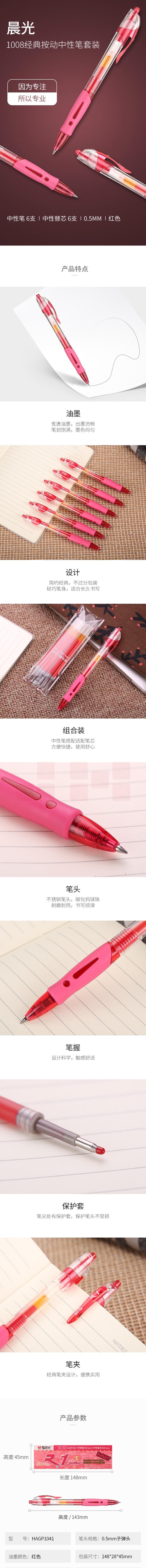 晨光GP1008红色0.5mm按动中性笔子弹头签字笔 12支/盒;