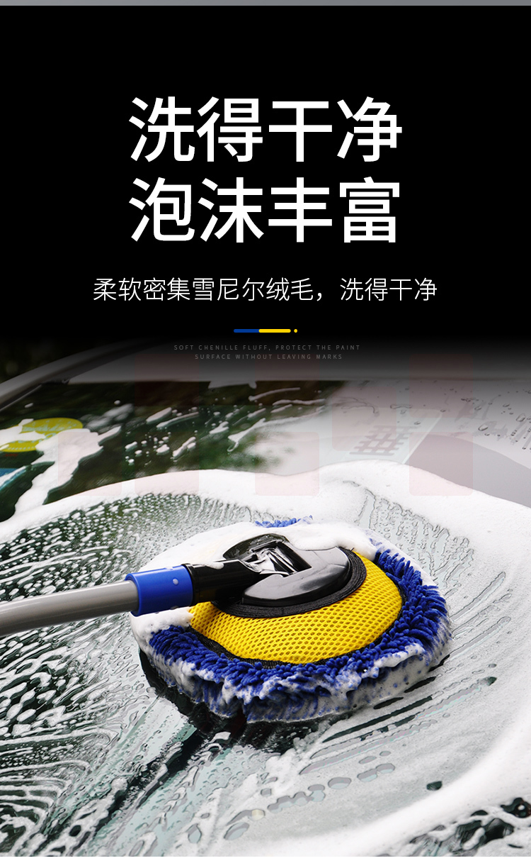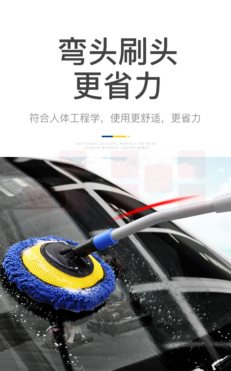 洗车拖把 刷车刷子软毛不伤汽车用擦车工具 2019升级款雪尼尔可伸缩长杆洗车刷(蓝色)