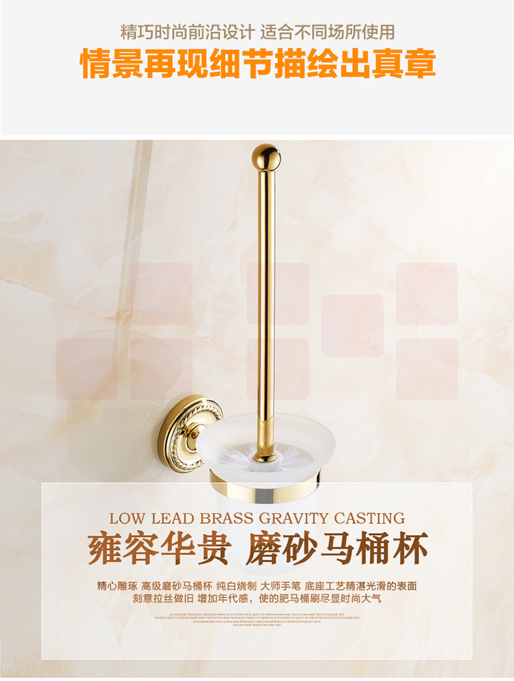 5J6811-MGG 全铜马桶刷 全铜欧式镀金 厕所刷 马桶刷套装 清洗三件套 马桶杯