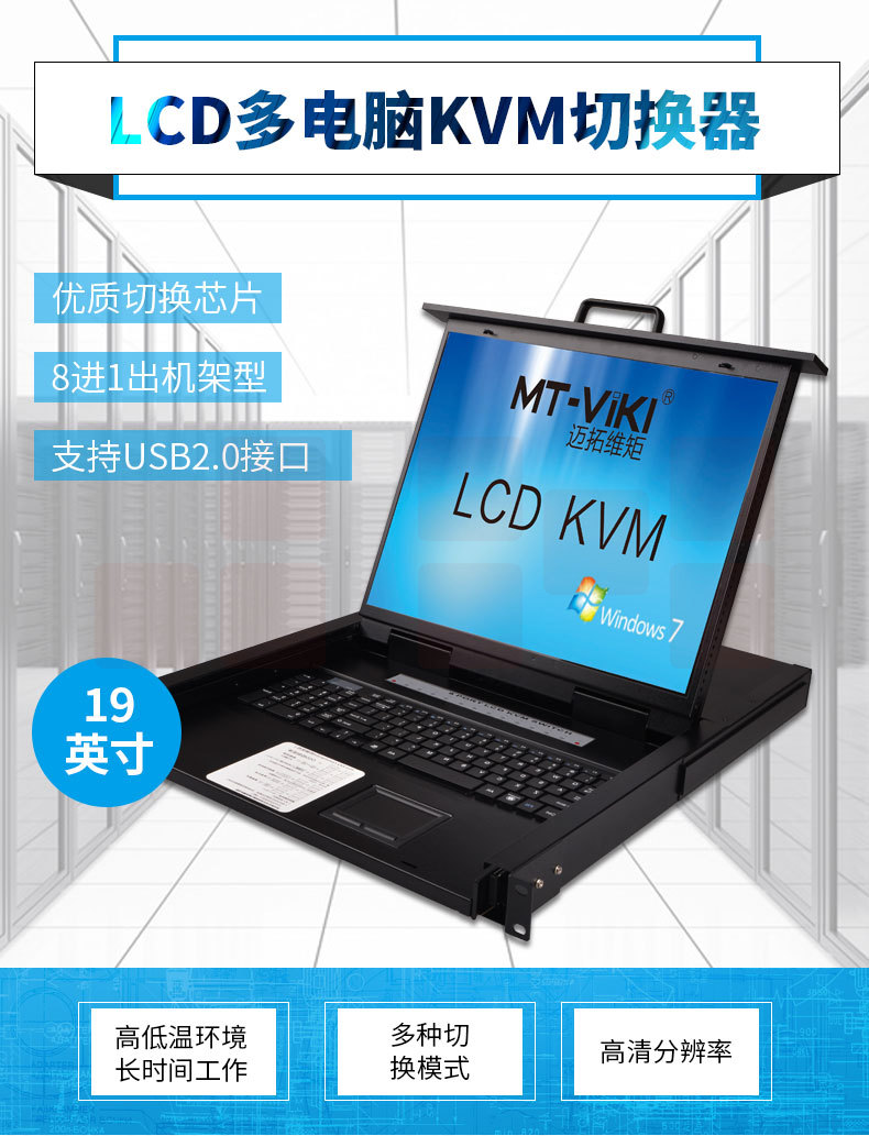 迈拓维矩 KVM切换器16口LCD显示器USB VGA自动19寸屏幕一体IP切换器16口(MT-1916UL)
