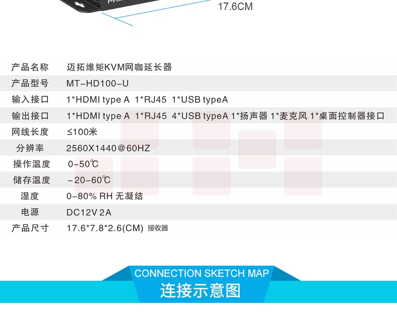迈拓MT-HD100-U HDMIKVM延长器100米吧咖集中转USB咖延长器 默认尺寸