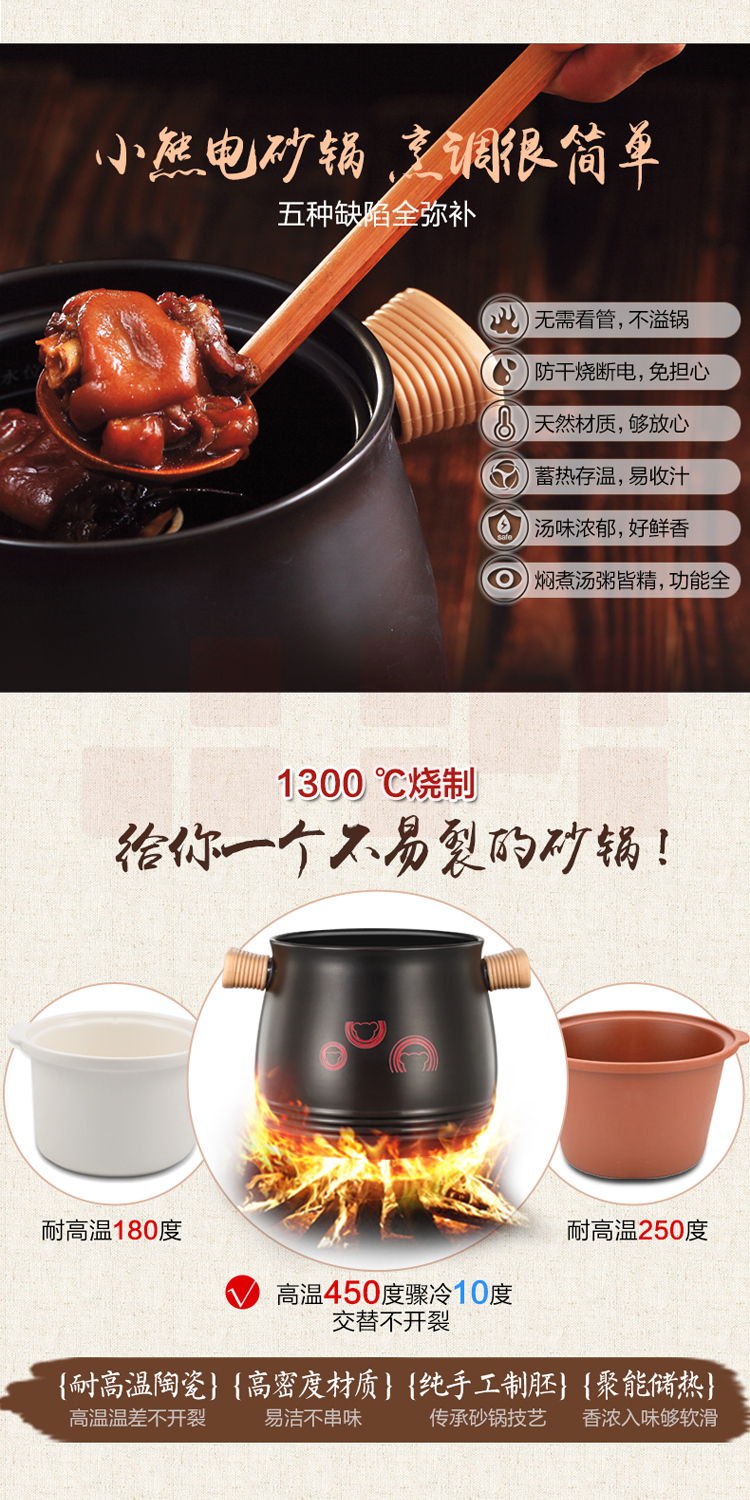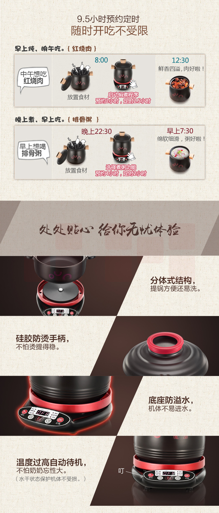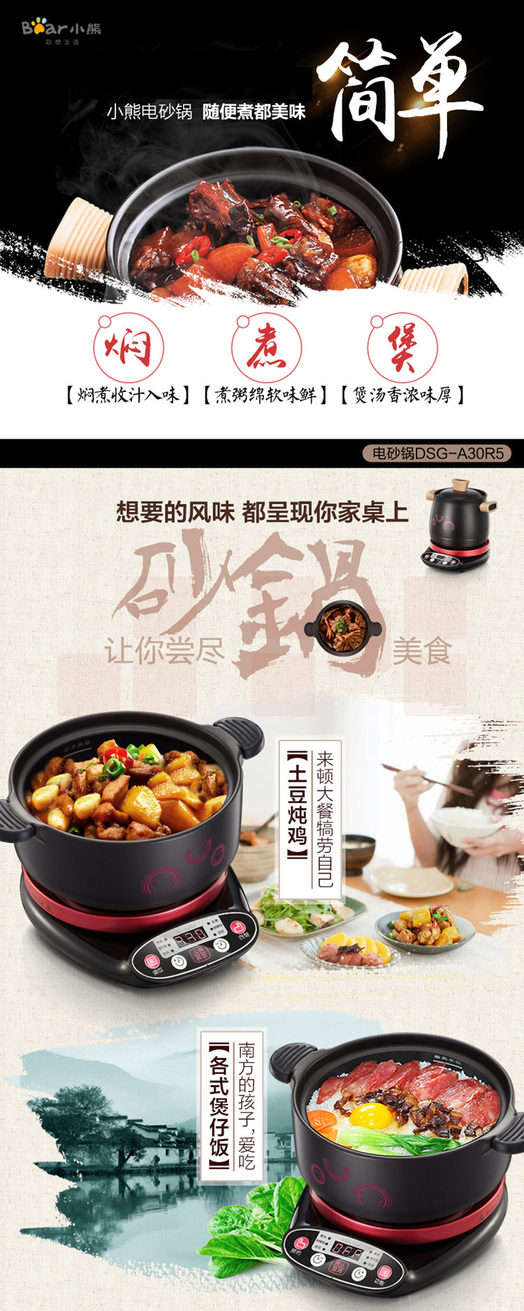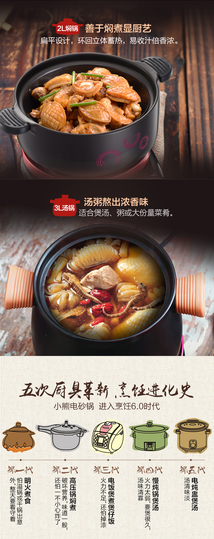 小熊(bear)电炖锅 陶瓷电砂锅煲汤锅焖锅全自动家用煮粥炖汤锅DSG-A30R5 2L+3L