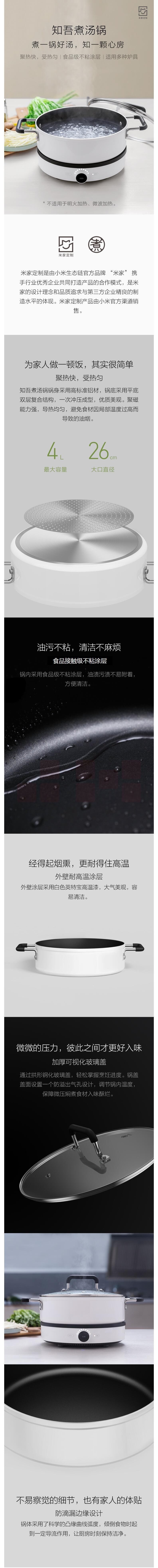 米家 小米知吾煮汤锅4L 食品级不黏涂层 耐腐蚀易清洗 26cm大口径