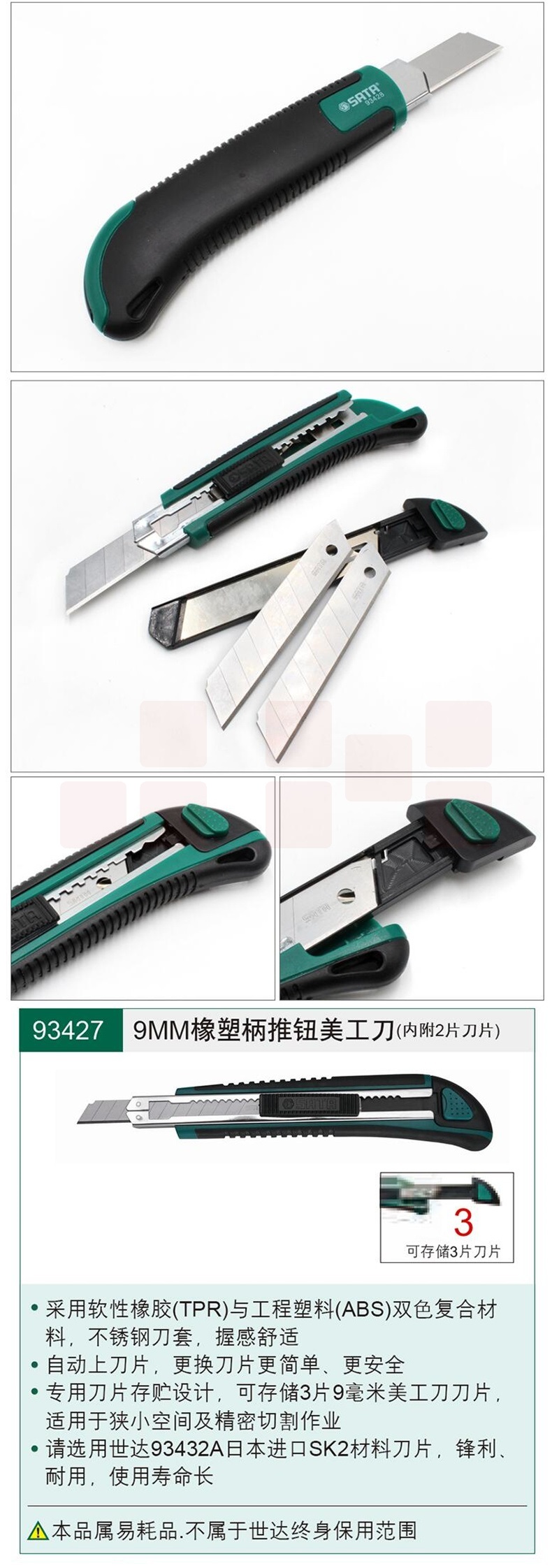 世达(SATA)橡塑柄推钮美工刀13节9x80MM 93427