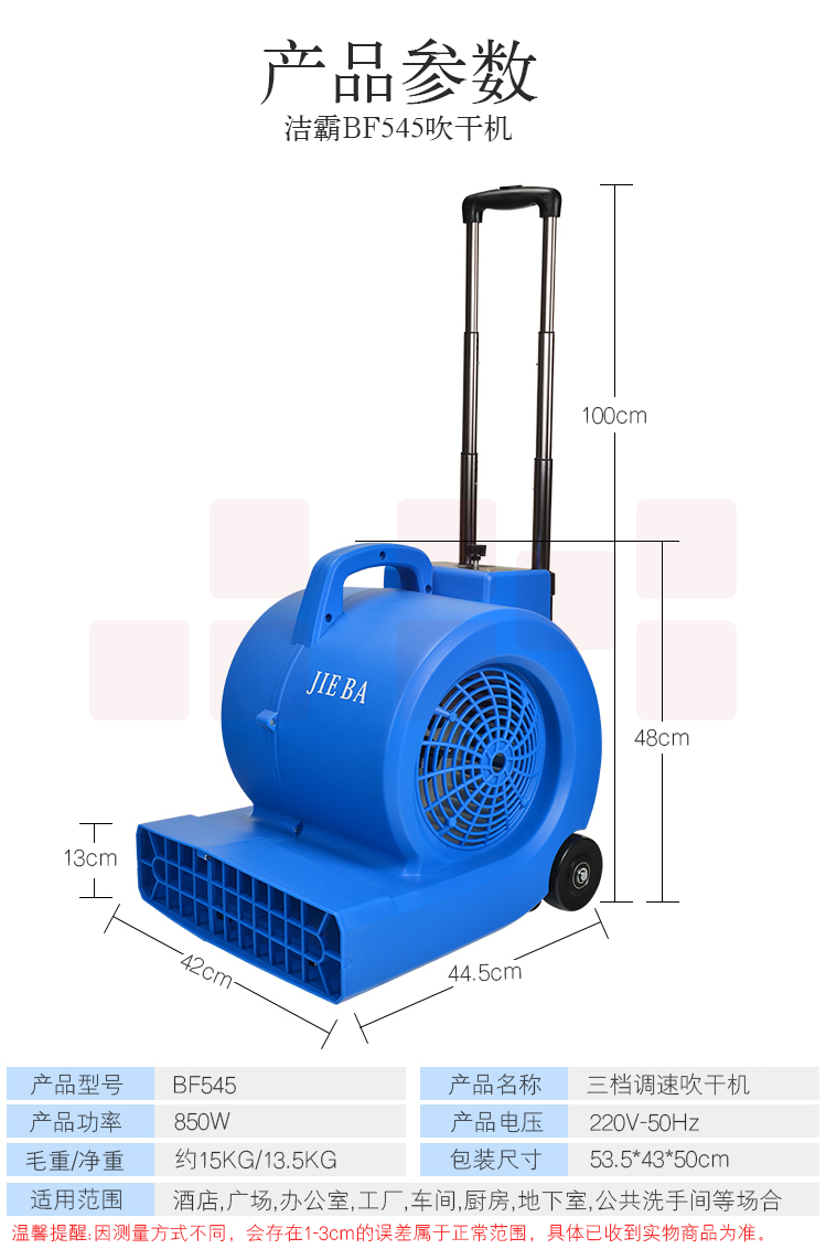 白云(BAIYUN)洁霸BF545强劲清洁吹干机地毯地面吹风机