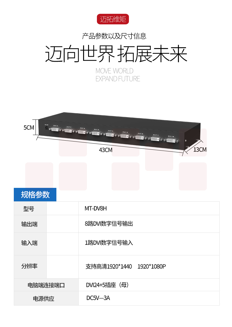 迈拓维矩MT-DV8H 高清dvi分配器1进8出一分八电脑显示器分屏器1080p