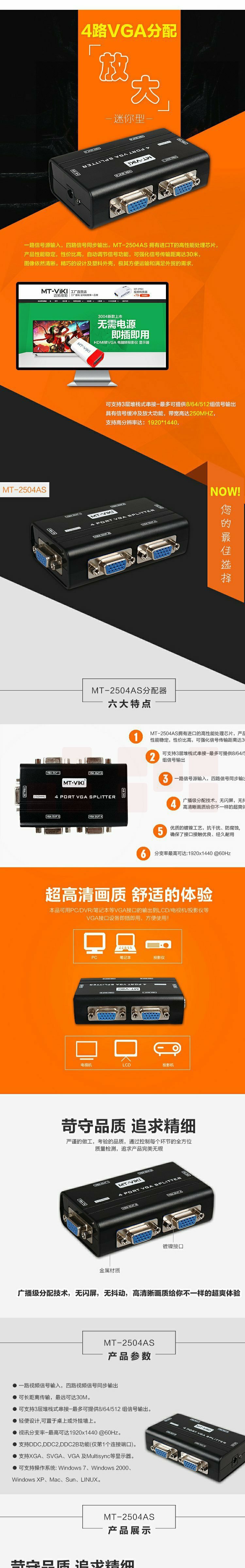 迈拓维矩MT-2504AS 四口VGA分配器1进4出 1分4分VGA屏器显示同步