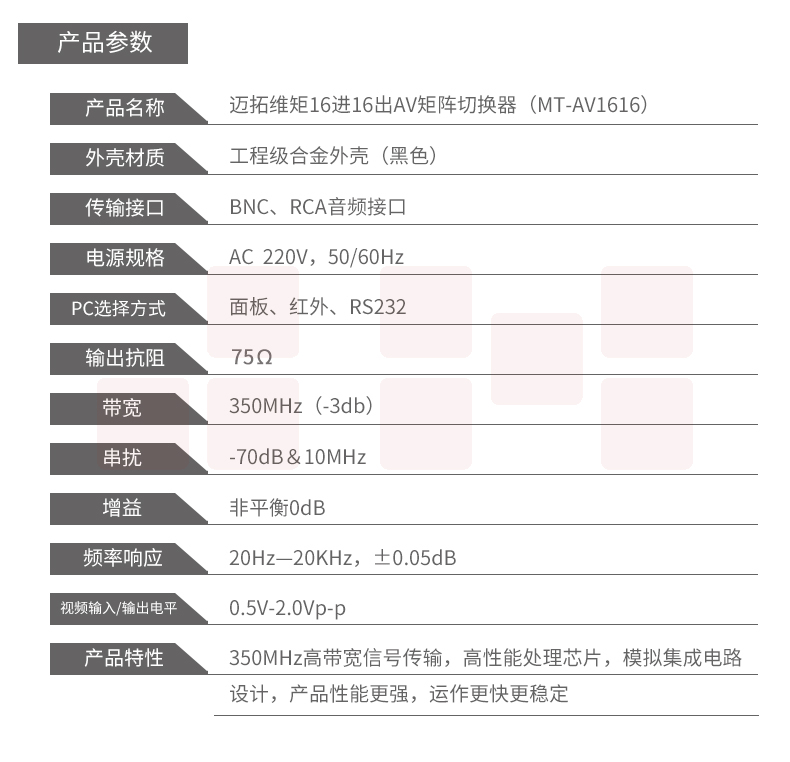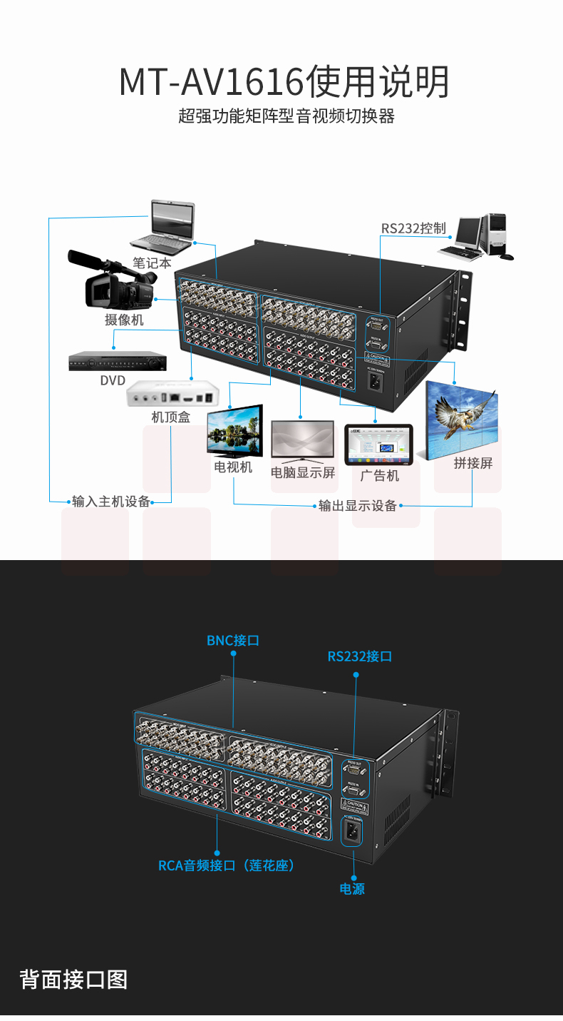 迈拓维矩MT-AV1616 av矩阵16进16出切换器高清监控音频视频矩阵主机