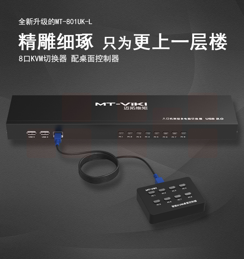 迈拓维矩MT-801UK-L kvm切换器8口usb键鼠vga显示器8进1出多电脑切换