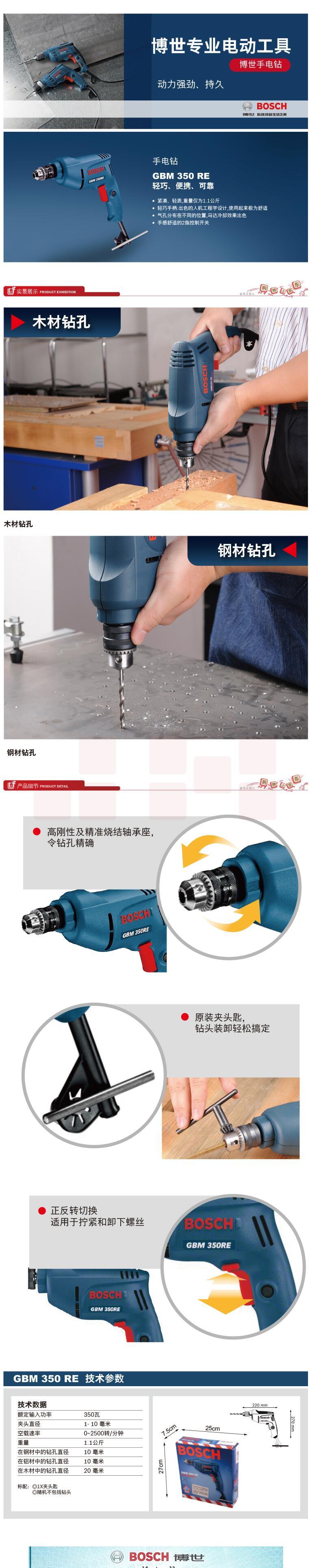 博世(BOSCH)GBM 350 RE 手电钻电动螺丝刀手枪钻 350瓦10mm