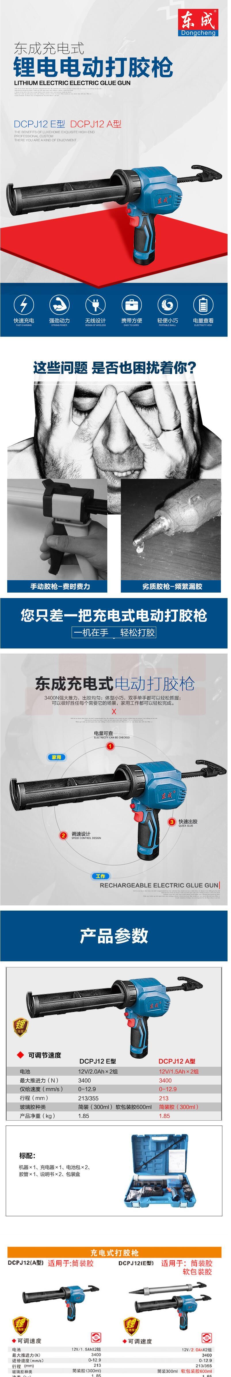 东成 DCPJ12(E型)充电式打胶枪双锂电胶枪12V