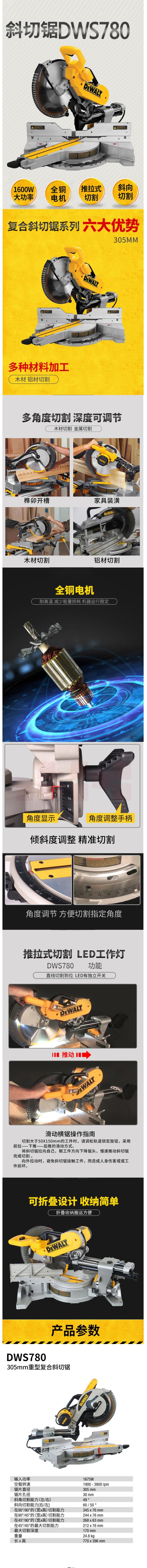 得伟(DEWALT)DWS780 双向斜切锯305mm 多用复合斜切锯