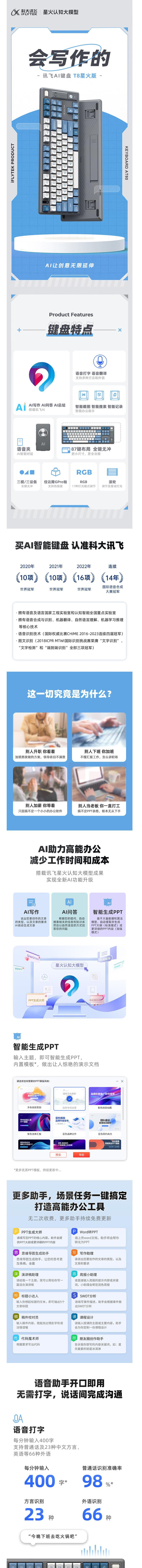 科大讯飞 AI智能键盘 机械键盘 无线蓝牙键盘 AI写作问答智能PPT 全键无冲 三模连接 T8星火版