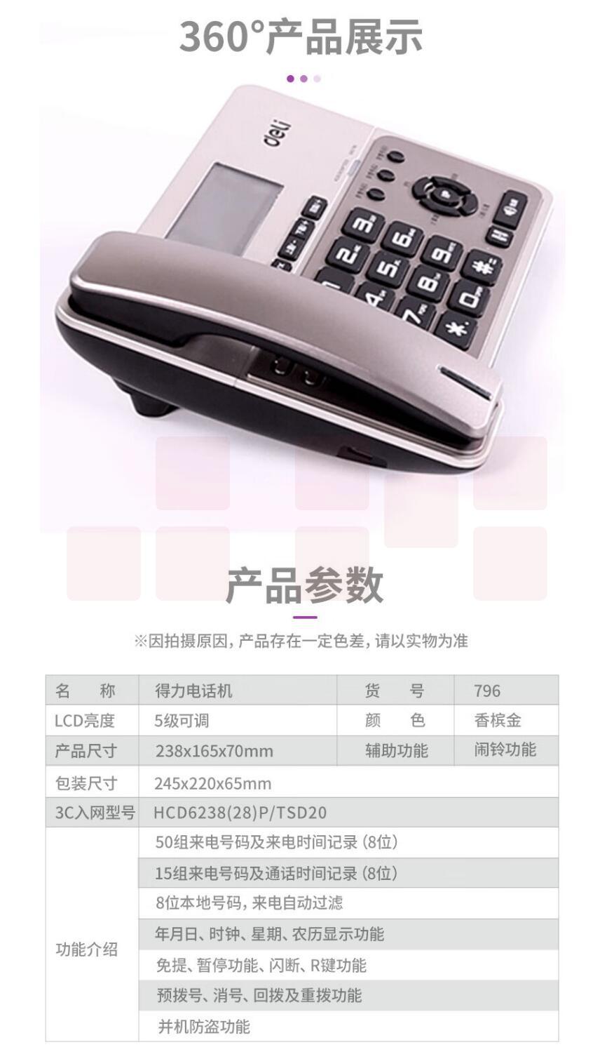 得力 796 电话机固定电话 187x238x86mm 金属灰
