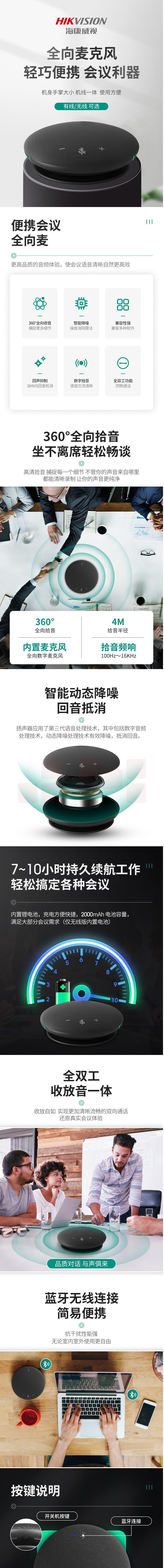 海康威视 DS-65VA300B 无线蓝牙视频会议全向麦克风 免驱3米拾音360°收音