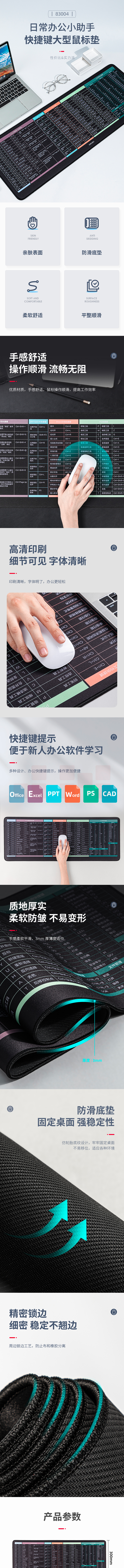 得力(deli) 83004 快捷键鼠标垫 800*300*3mm 电脑键盘桌垫