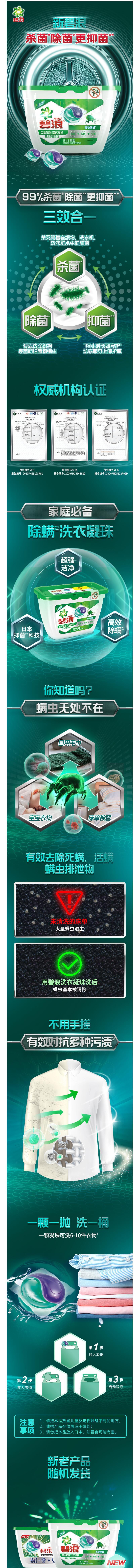 碧浪洗衣凝珠57颗 3盒强去渍杀菌抑菌高效除螨草本清新香