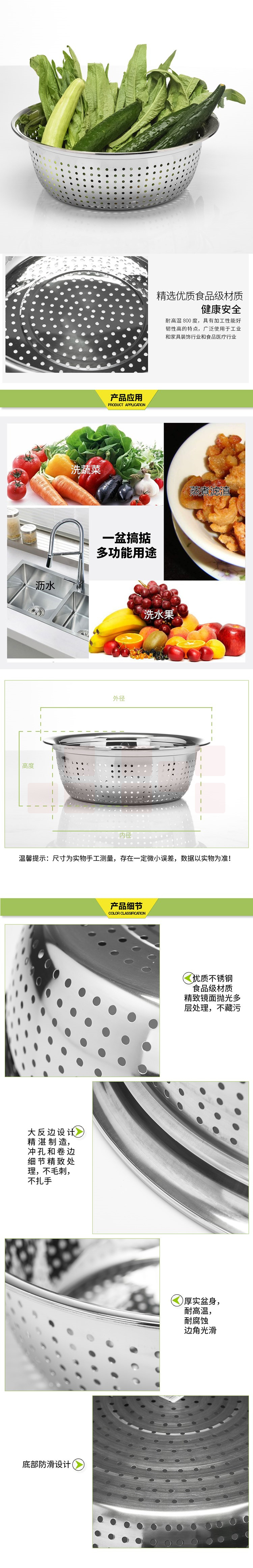 不锈钢大漏盆洗菜盆 60cm*18cm 齐全滤水洗水果盆洗菜篮沥水盆