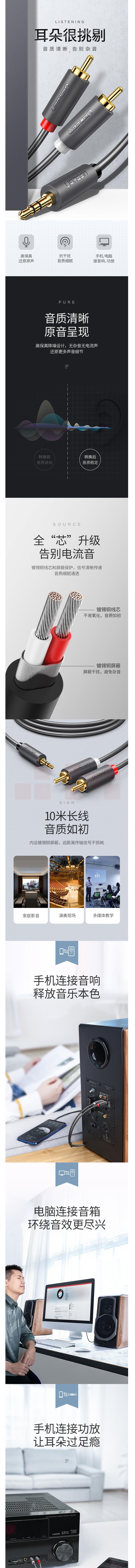 绿联(UGREEN)10512 3米3.5mm转双莲花头音频线 连接线
