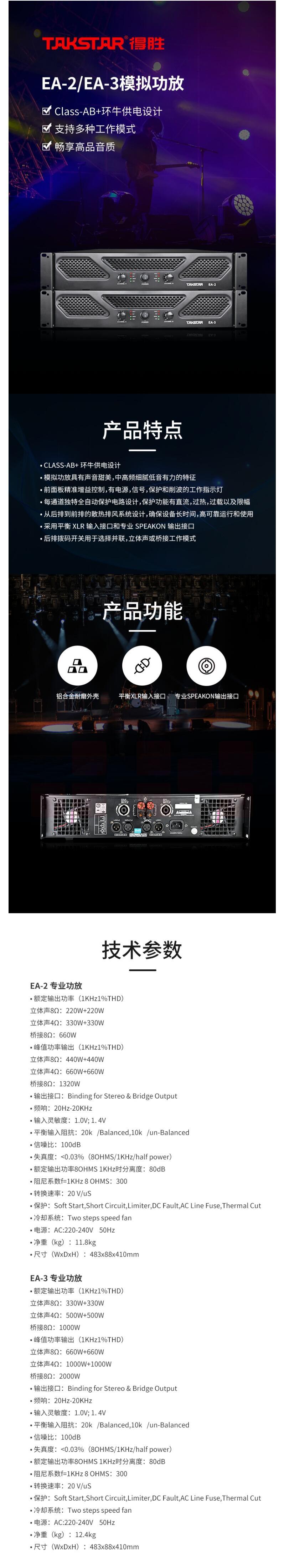 得胜(TAKSTAR)EA-2 纯后级功率放大器 专业音频舞台音响演出工程定阻功放机