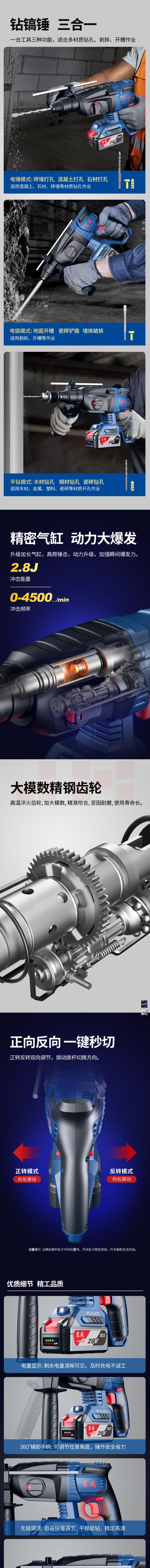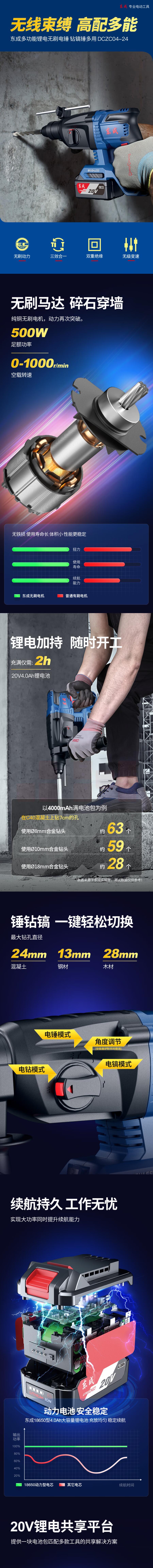 东成20V锂电电锤DCZC04-24E充电工业级无刷冲击钻电镐电钻三用