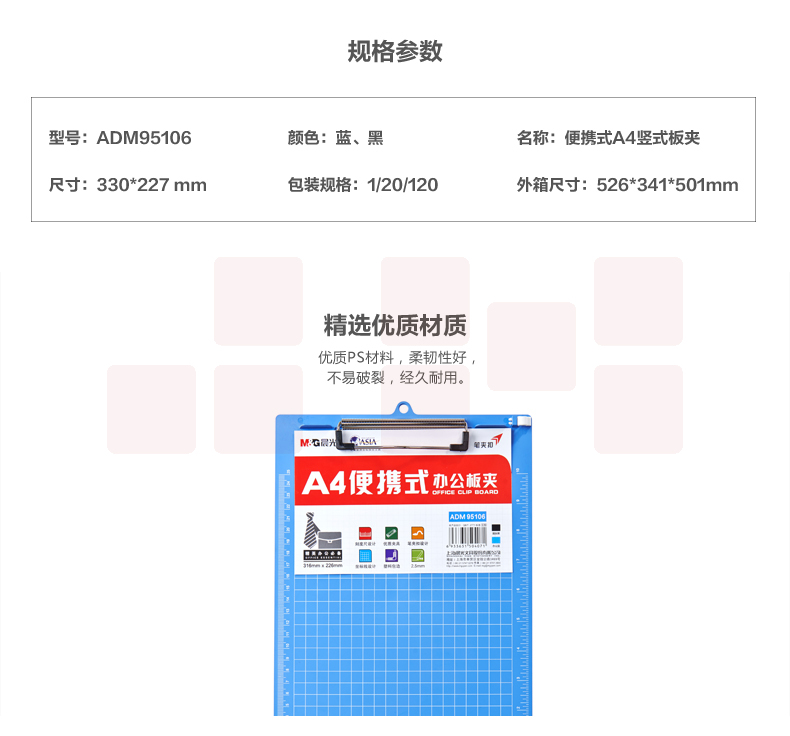 晨光 A4板夹带刻度报告夹ADM95106 黑色