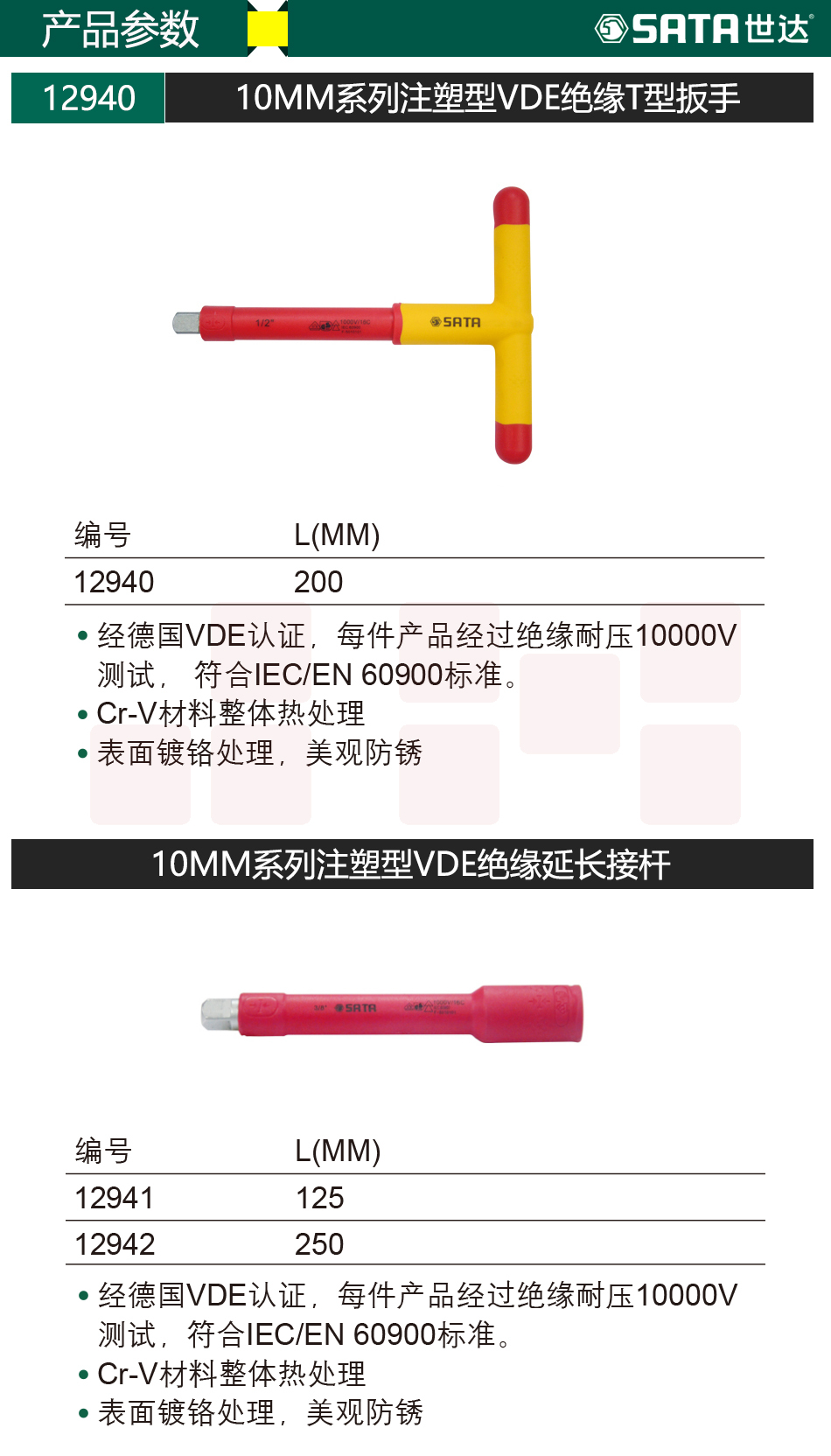 世达(SATA)10MM系列VDE绝缘T型柄200MM 12940
