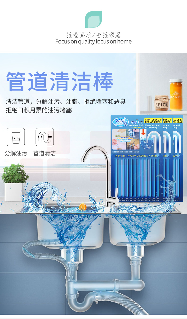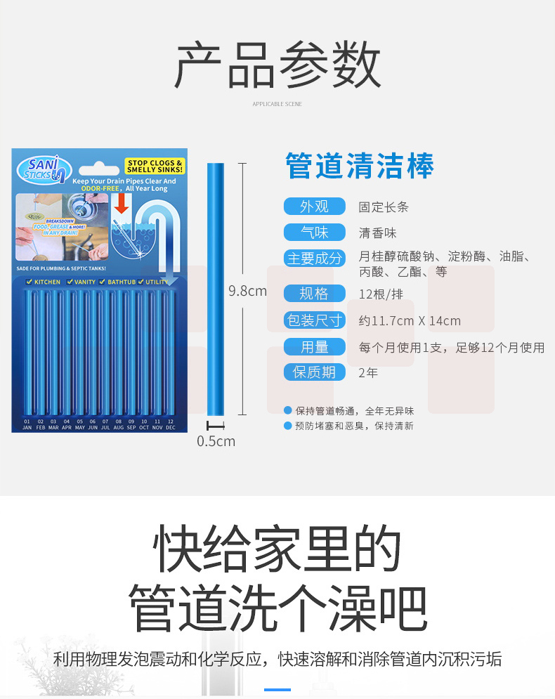 万能清洁棒 下水道管道疏通神器 强力清理一疏百通 12根/盒