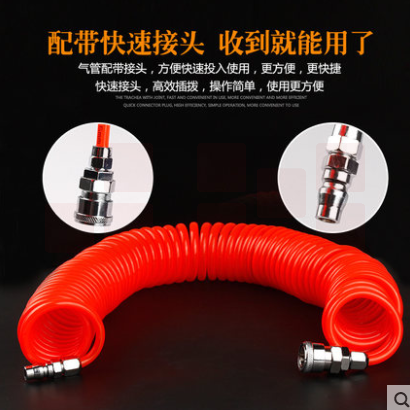巨联(JULIAN)橙色5*8*50尺(12米左右)(配接头)气动弹簧管空压机气泵气管软管伸缩PU螺旋风管带快速接头气线气绳