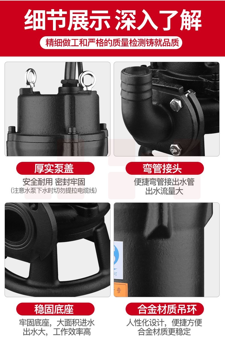 家用污水泵大流量抽水泵灌溉农用排污泵切割式潜水泵带绞刀泥浆泵 380V/1500W2寸口切割泵