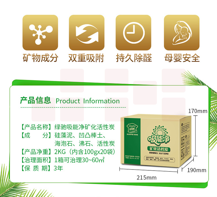 绿驰 2000g甲醛清除剂活性炭包除甲醛苯去味竹炭包