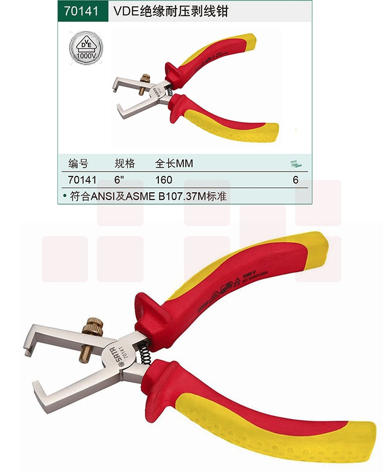 世达(SATA)VDE绝缘耐压剥线钳货号 70141