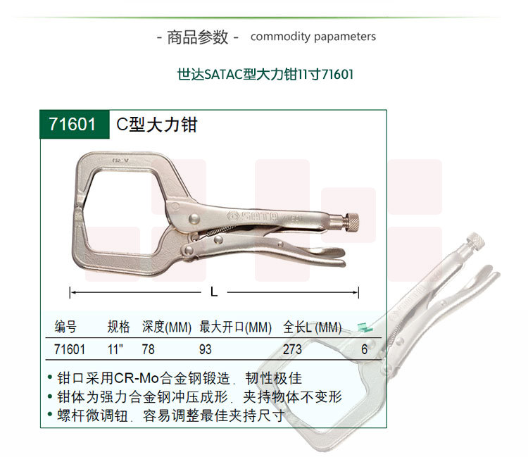 世达(SATA)C型大力钳11"货号 71601