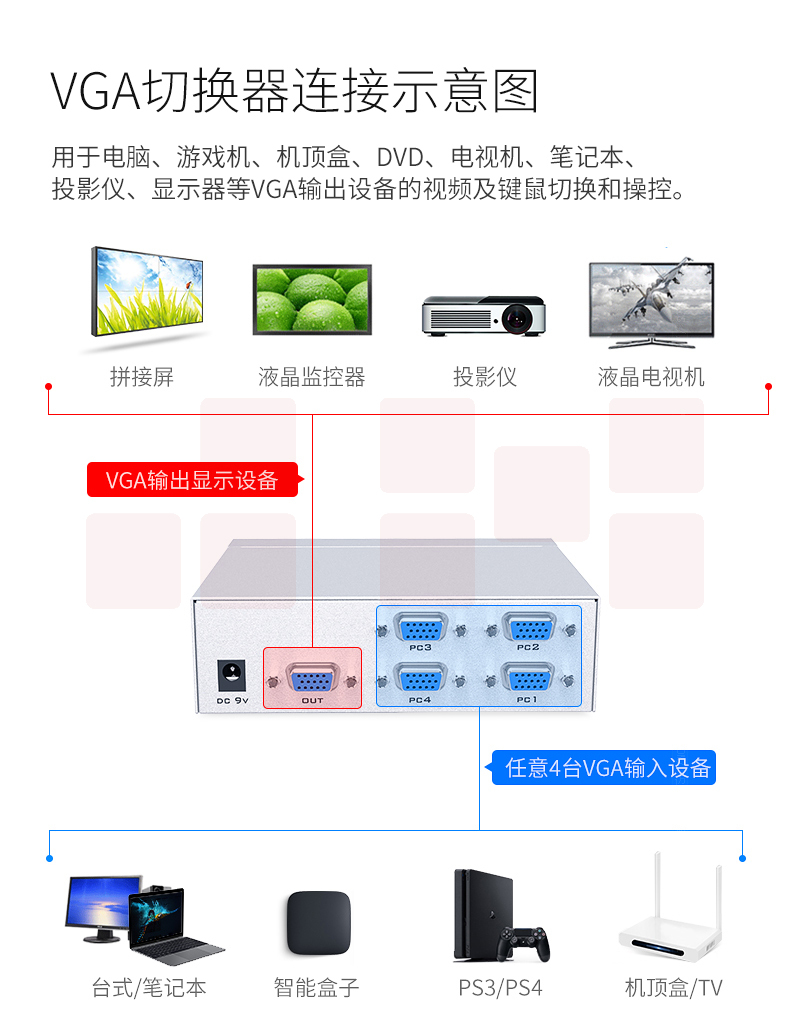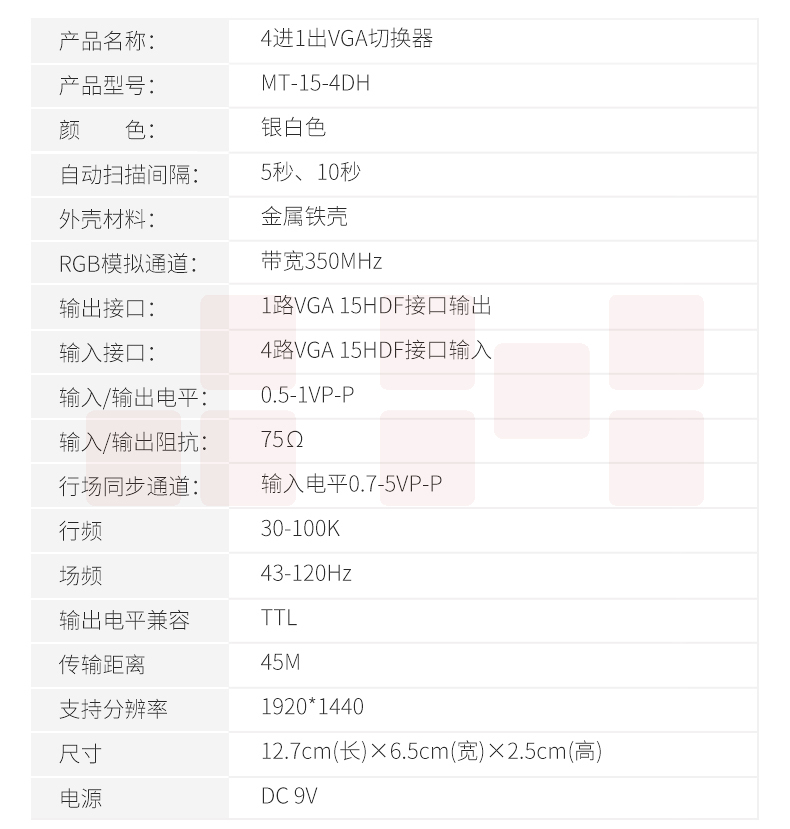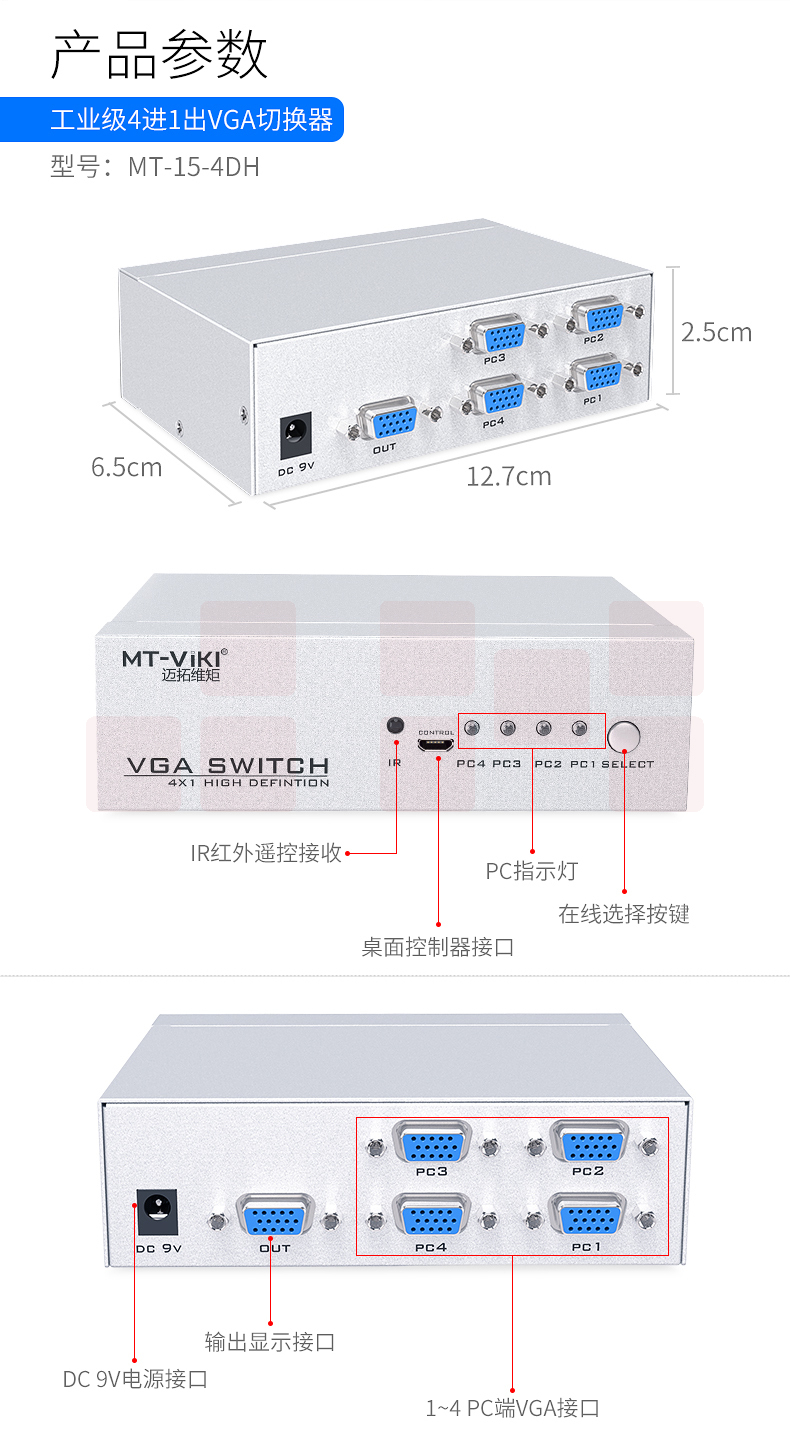 迈拓维矩MT-15-4DH 四口vga切换器4进1出显示器屏幕视频切屏器四进一出