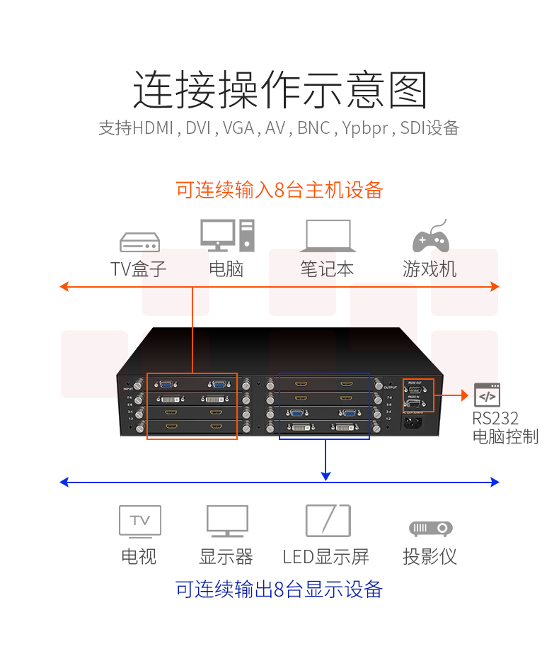 迈拓维矩 MT-HC0808 8进8出插卡式混合型矩阵切换器高清分配器多种接口可搭配机架式