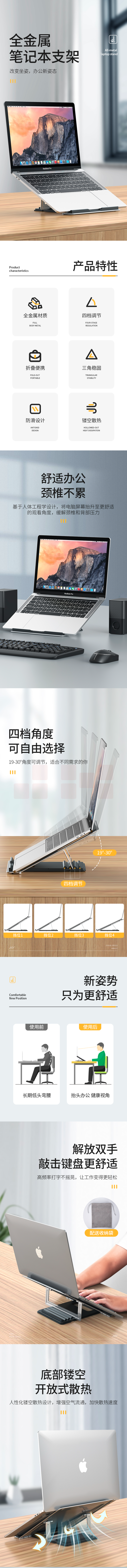 铝合金笔记本支架 4档调节 显示器支架铝合金 250*220*16.5mm
