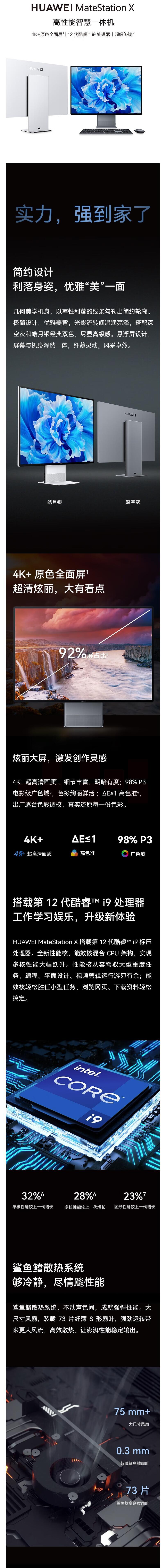 华为 MateStation X 28.2英寸工作站 i9-12900H/32G/2TB SSD/WIFI6 Win11