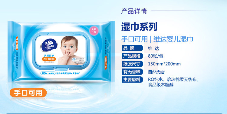 维达 婴儿湿巾手口湿纸巾80片/包 *5包 抽取式湿纸巾 VW2004