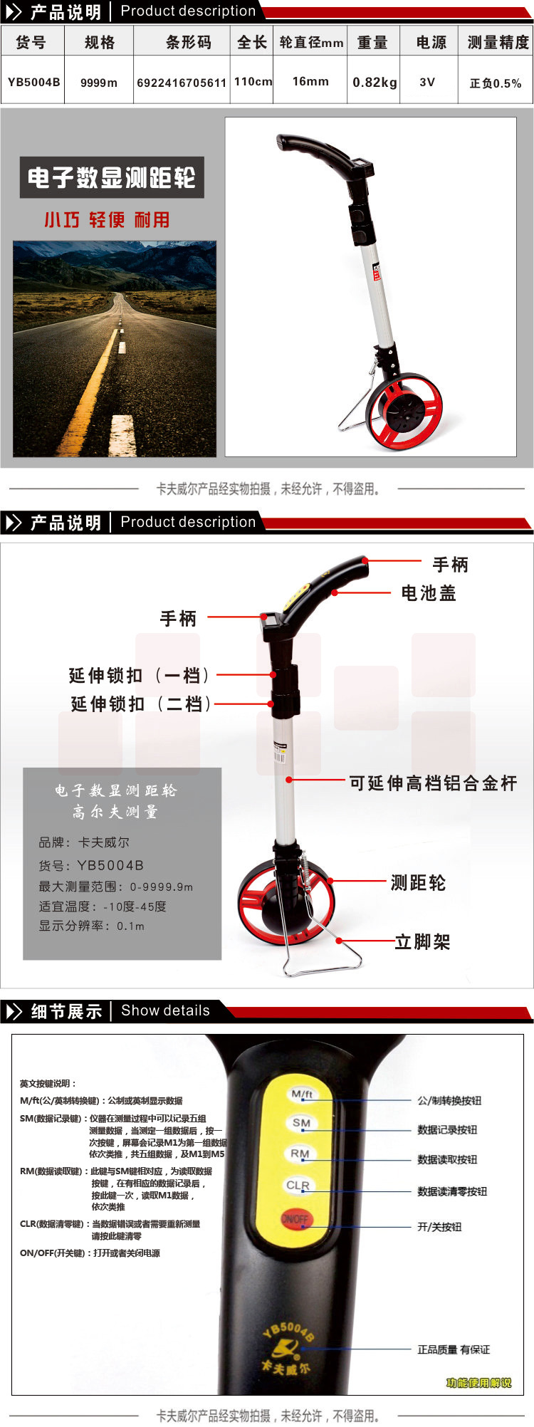 卡夫威尔(OK-TOOLS) YB5004B 电子数显测距轮/轮式测距仪/手持式测量轮尺